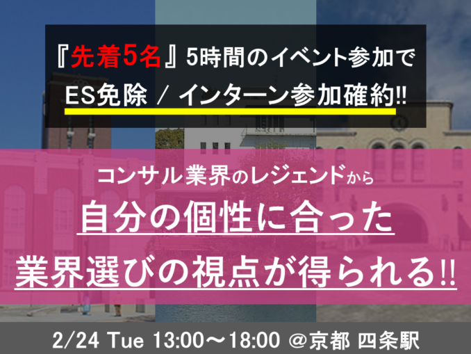 - 就活の軸がまだ固まっていない人ほど参加すべき!! もちろん、コンサルに興味ある人も大歓迎!!
