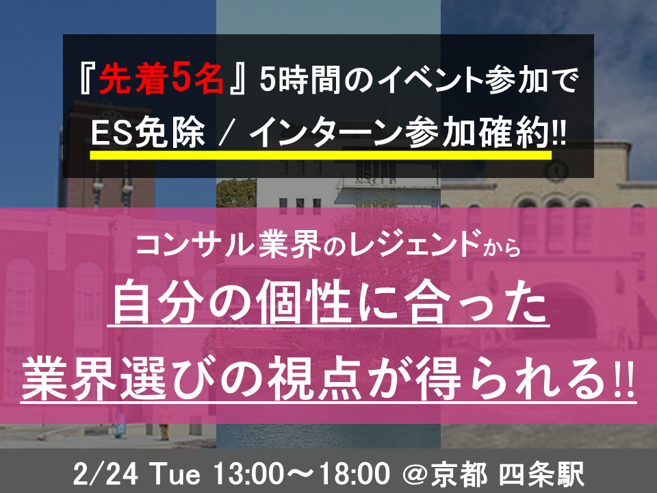 ≪ 27卒 | 先着5名 ≫ 業界・会社選びの視点をコンサルのレジェンドから学べる | 昨年1年で350名動員の超人気セミナーに “無抽選で参加” 確約!! | 2.24@京都 四条駅近辺