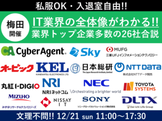≪ 27卒 | 12/21@梅田 | 入退室自由 ≫ 1日で様々な業界・企業の情報収集が可能!! | 平均年収1,000万以上の企業参加あり | IT業界の全体像がわかる26社合説 | 私服OK 2025年11月11日 maiko 0